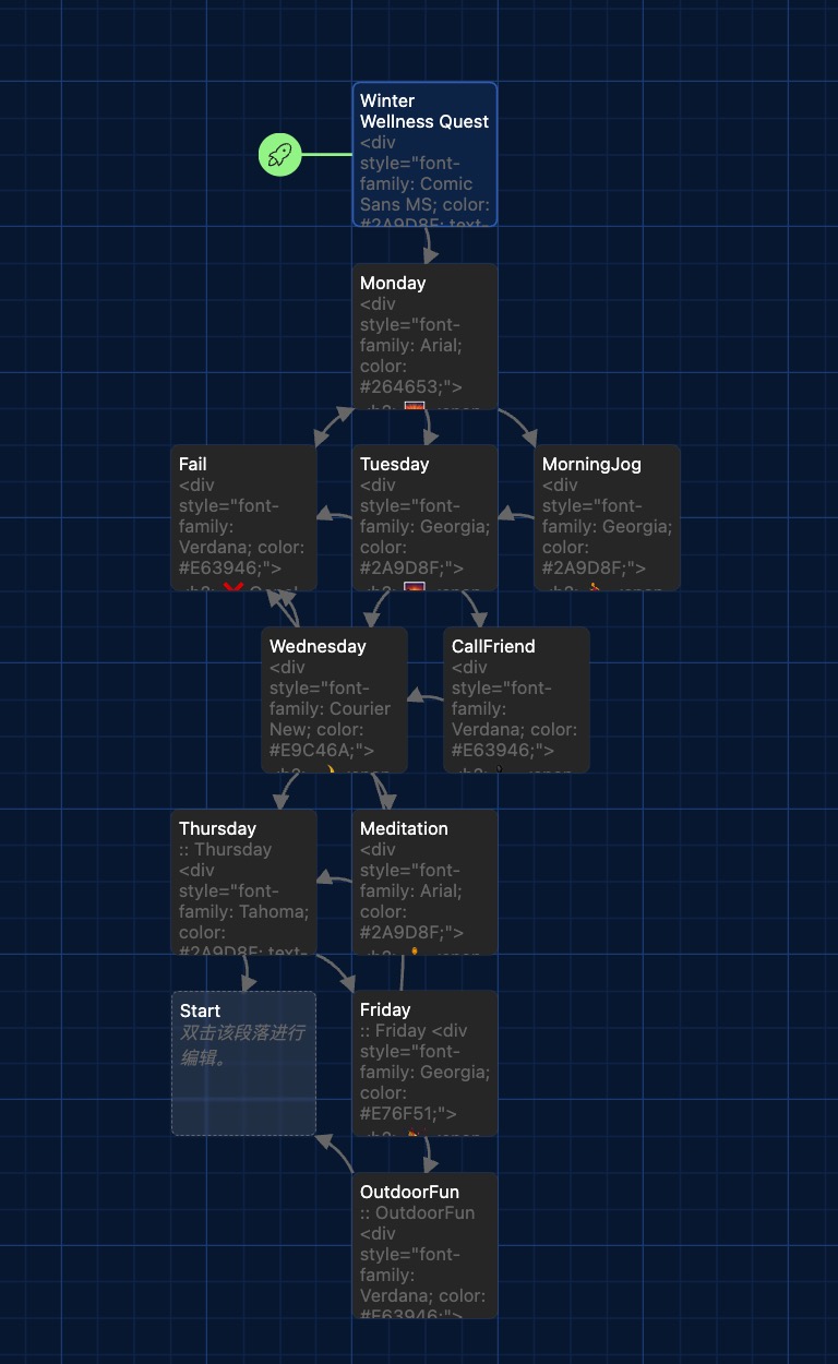 I believe that the novelty of interactive tales is that they can elicit emotional resonance in players through choices. For example, Frogs in Space engages the player through a warm narrative environment, and the story of a frog hunting for stars for an Earth cat might resonate with the player's friendship; whereas Winter Wellness Quest resonates with the player's lived experience through its The 'Winter Wellness Quest' speaks to the player's life experience by telling a true narrative about the chaotic routines of students in the United Kingdom during the winter. Through these quests, I've realized that interactive narratives are more than just a form of entertainment; they're also a strong medium for eliciting thought and emotional resonance in players. In the future, interactive narrative design may have a greater impact on education, cultural expression, and the examination of societal concerns. 哈哈哈哈哈哈